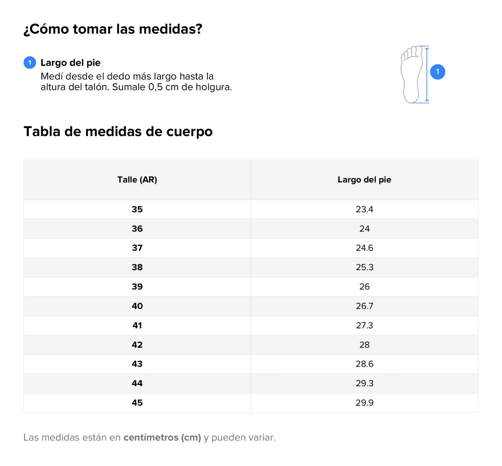 Recomendamos elegir tu talle habitual. Los talles disponibles van del 35 al 40 y tienen calce estándar.